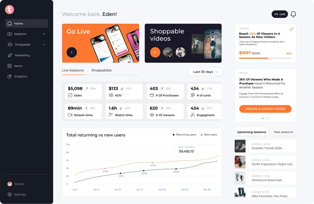 Turn one-time viewers into customers for life and maximize customer value with Terrific’s live stream social shopping platform.